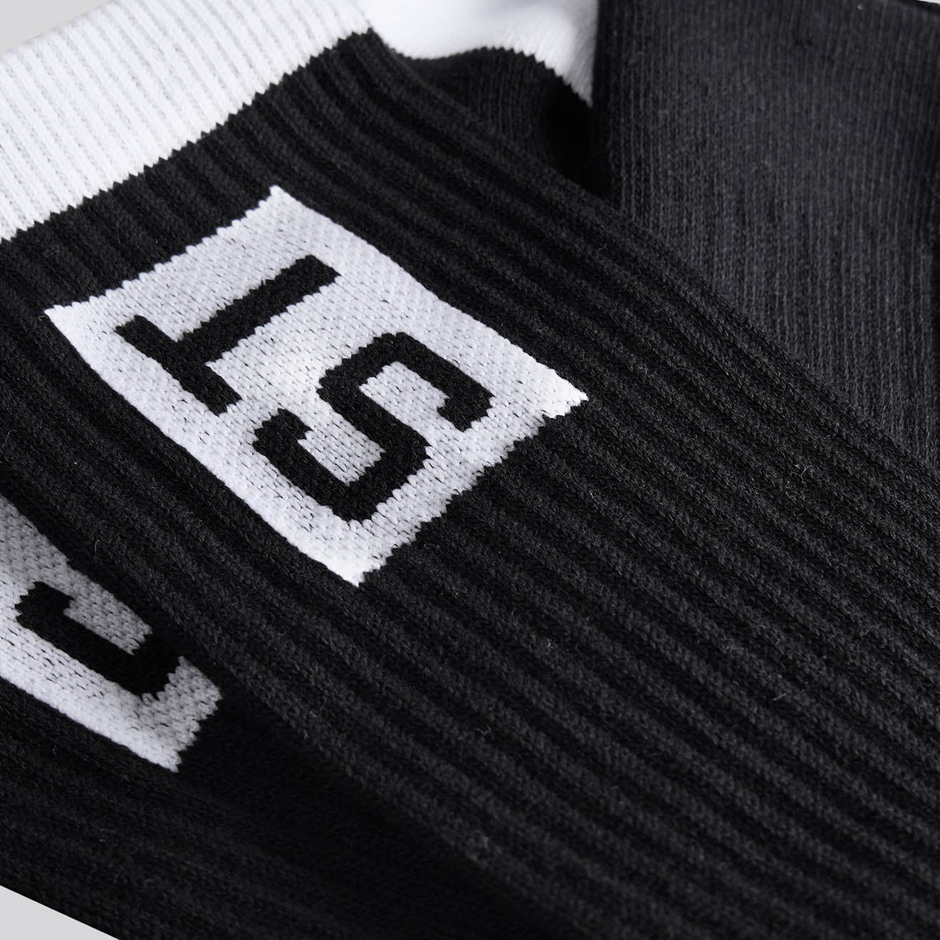 The ST95 ST Socks in Black are designed for everyday wear with a classic athletic style. This product in this colour features a ribbed knit construction and this product in this colour includes cushioning through the sole, a secure stretch cuff, and the ST95 jacquard branding.