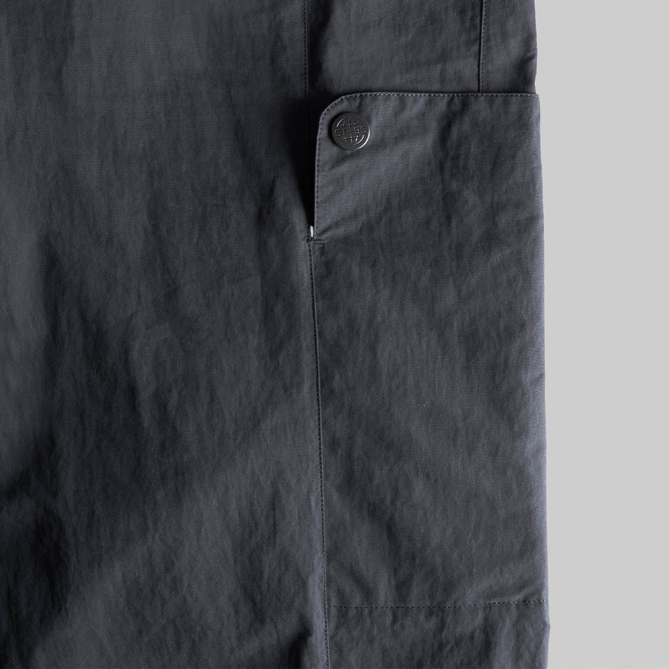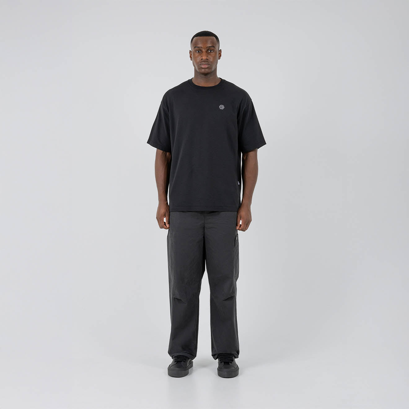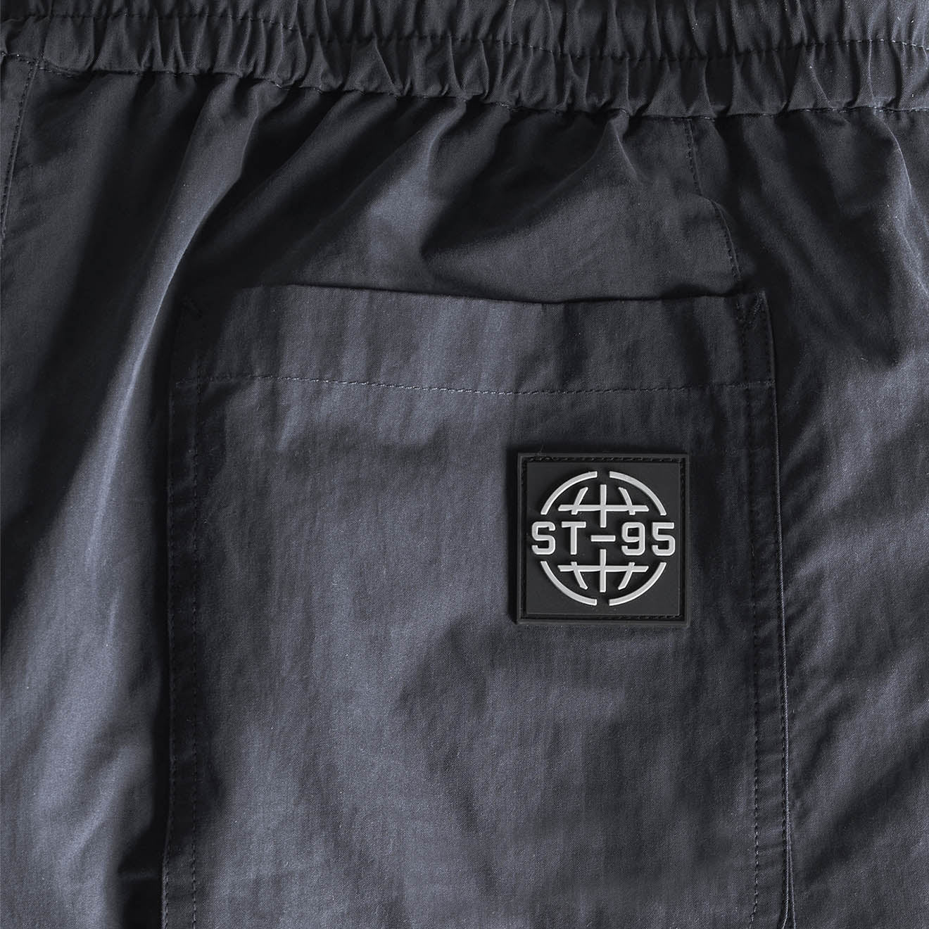 The Tesino Pant showcases ST95’s focus on technical utility and modern comfort. Crafted from a lightweight 68% cotton, 32% nylon blend, these relaxed-fit trousers feature an elasticated waistband with drawcord for a secure, adaptable fit. Functional details include in-seam hand pockets, a right-hand rear patch pocket, and a snap-opening cargo pocket for extra storage. Articulated back-knee darts provide ease of movement, while a branded ST95 patch and rich caviar black garment-dyed finish complete the design.