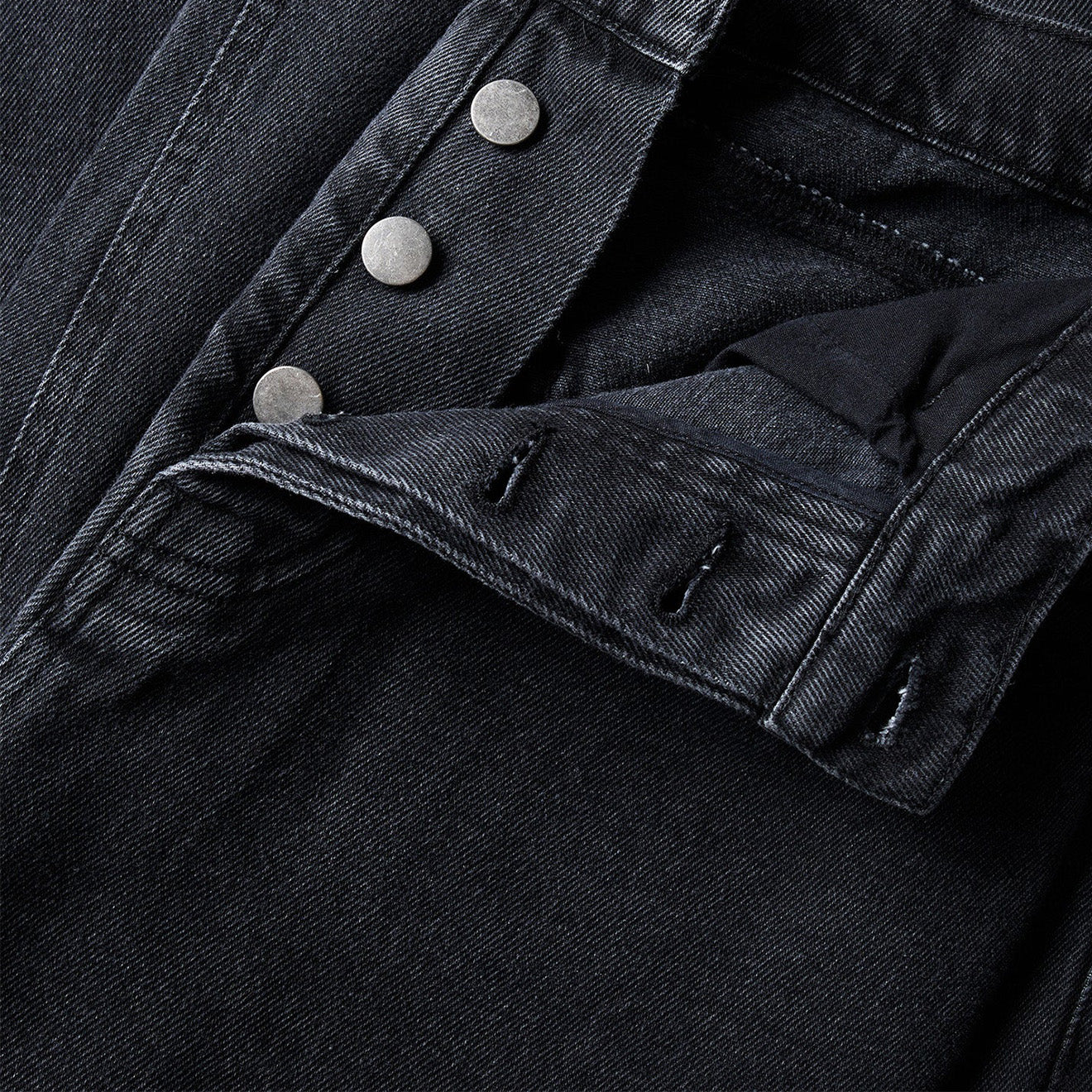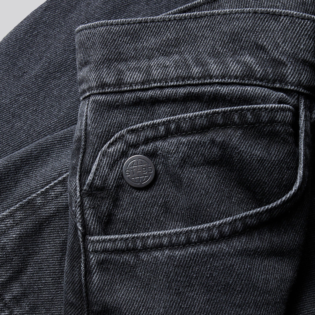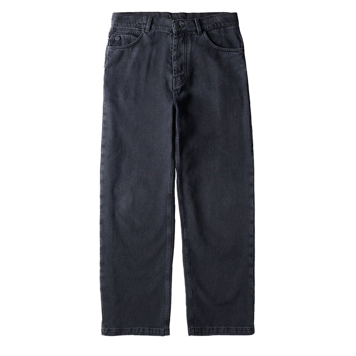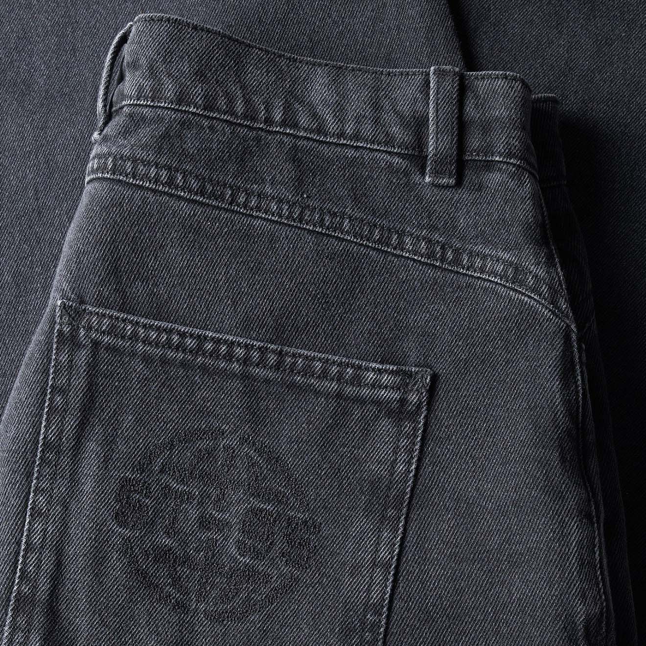 The Volturno Jean introduces a relaxed, baggy silhouette to ST95’s first denim collection. Constructed from 13oz (400GSM) denim in an 80% cotton, 20% recycled cotton blend, the style is finished in a washed black tone for a worn-in character. Details include a branded tac button fly and a tonal embroidered globe logo on the rear pocket, reinforcing the brand’s identity while drawing from classic denim design codes.
