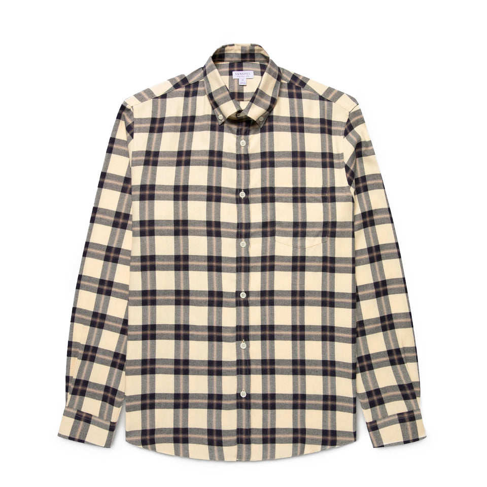 Sunspel Brushed Cotton Flannel Check Shirt Ecru / Truffle Check