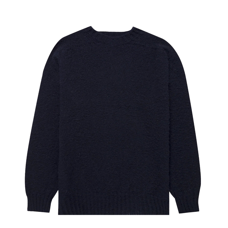 The Sunspel Brushed Shetland Crew Neck in Navy offers a refined take on the classic Shetland jumper. Knitted in Scotland using exceptionally soft lambswool, it combines traditional craftsmanship with elevated comfort. The rich navy mélange creates depth and texture, while gentle brushing enhances its softness. Designed with a regular fit, it features saddle raglan shoulders and chunky ribbed trims for a cosy, laid-back silhouette.