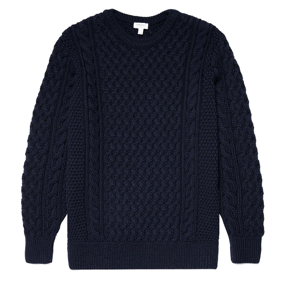 This contemporary reworking of the classic cable knit jumper – made using a chunky merino wool for extra softness – has a traditional look with a modern hand feel. Regular fit. Made in England, this is a modern winter classic.