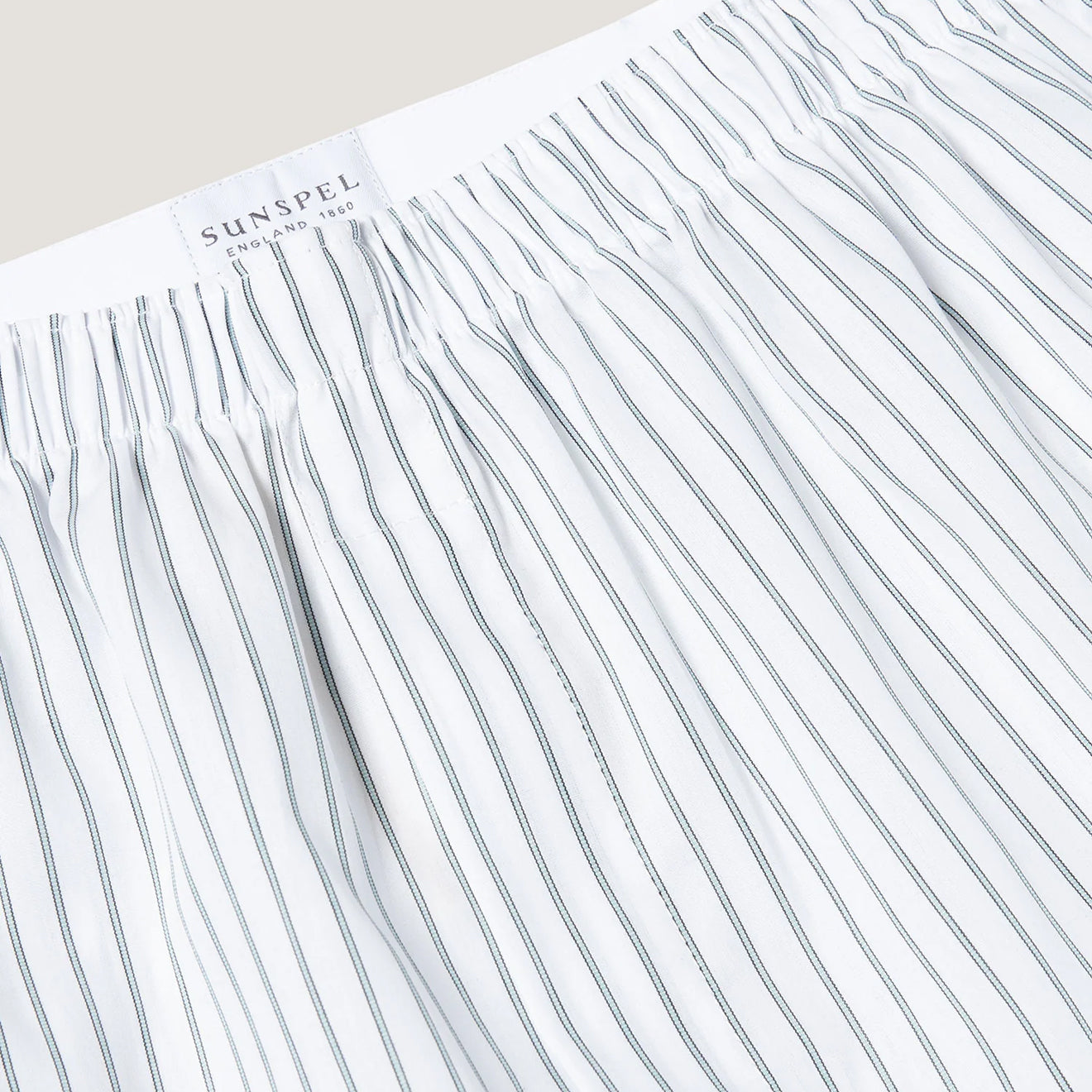 Sunspel Classic Boxer Short White / Blue / Green Archive Stripe