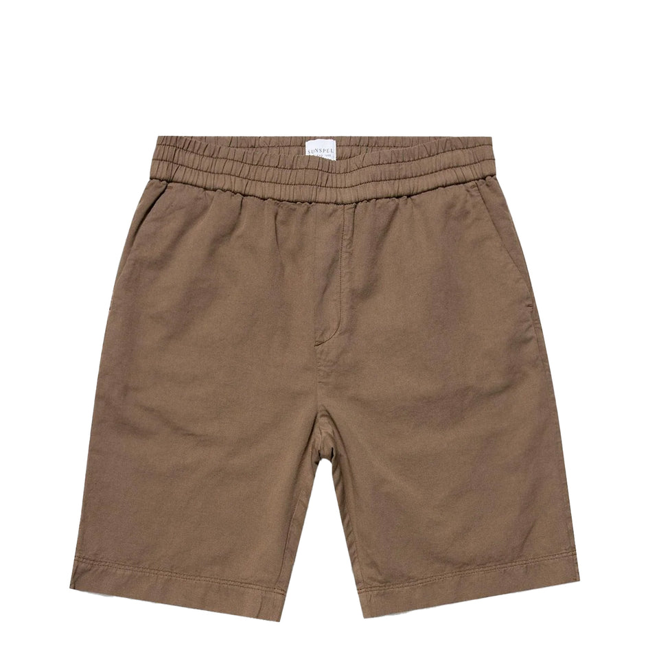 Sunspel Cotton Linen Drawstring Shorts Dark Tan