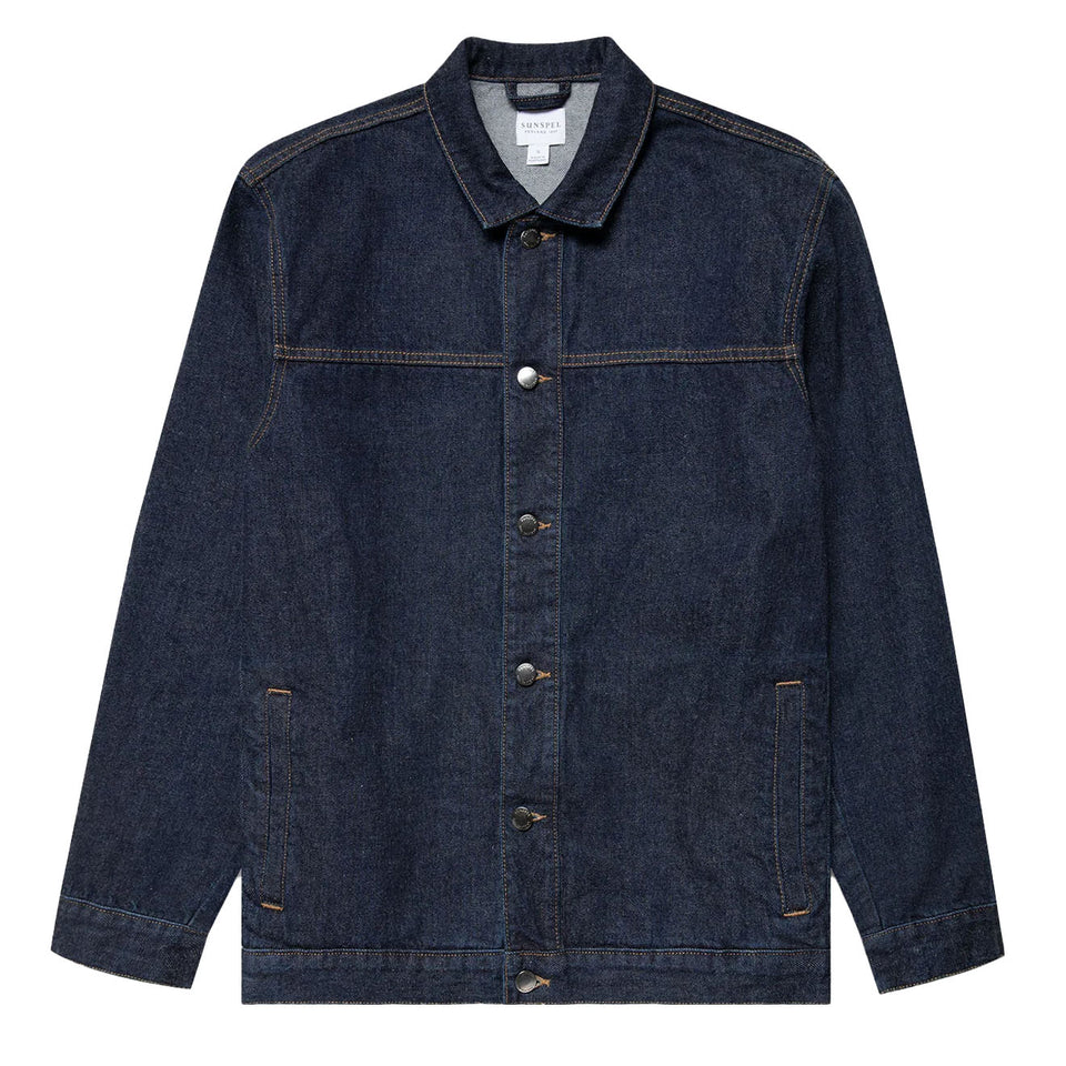 The Sunspel Denim Jacket in Denim Rinse Wash is a take on the traditional denim jacket, featuring a regular fit and crafted from luxury lightweight 13oz Japanese denim with a slight stretch. This wardrobe essential retains all the classic characteristics of a denim jacket. Pair it with a classic T-shirt and the Japanese Denim jeans for a nostalgic look, or style it with the Undyed Five Pocket Trouser. Made at the Kuroki mill in Ibara, Okayama, this denim is produced using a time-intensive rope-dyeing process that yields a rich indigo. The river water used to soften the fabric is treated and recycled for use in local rice paddies, reflecting a commitment to sustainability.