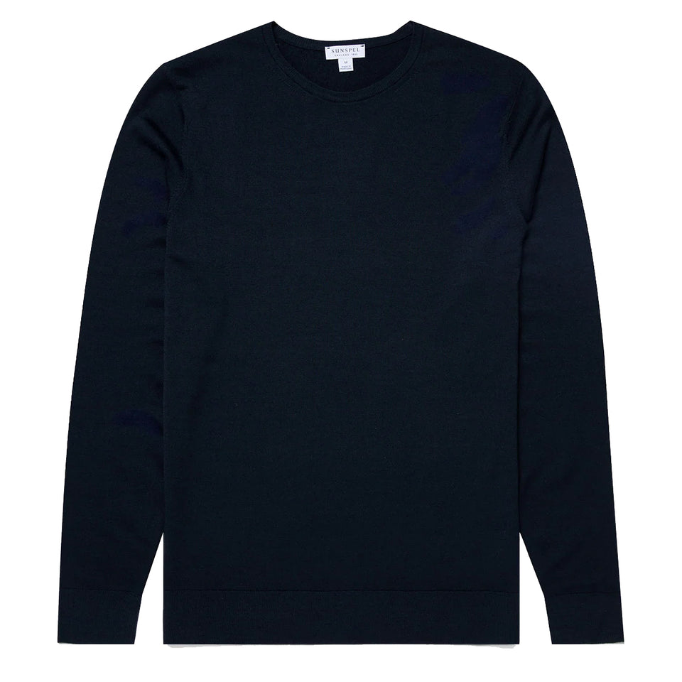 Sunspel Extra-Fine Merino Crew Neck Knit Light Navy