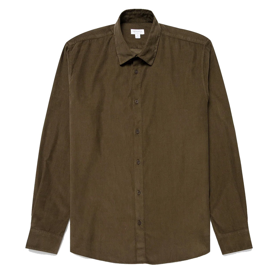 Sunspel Fine Corduroy Oxford Shirt Dark Moss