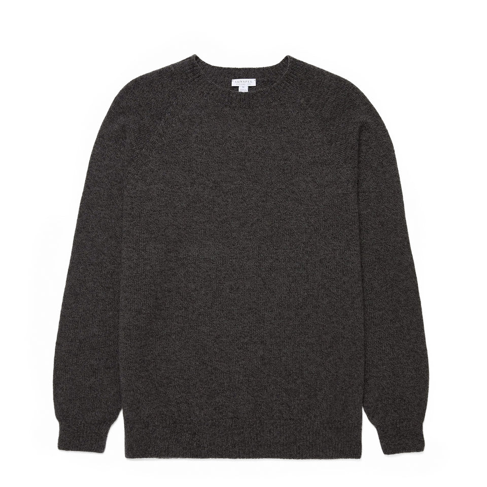 Sunspel Lambswool Crew Neck Dark Green Twist