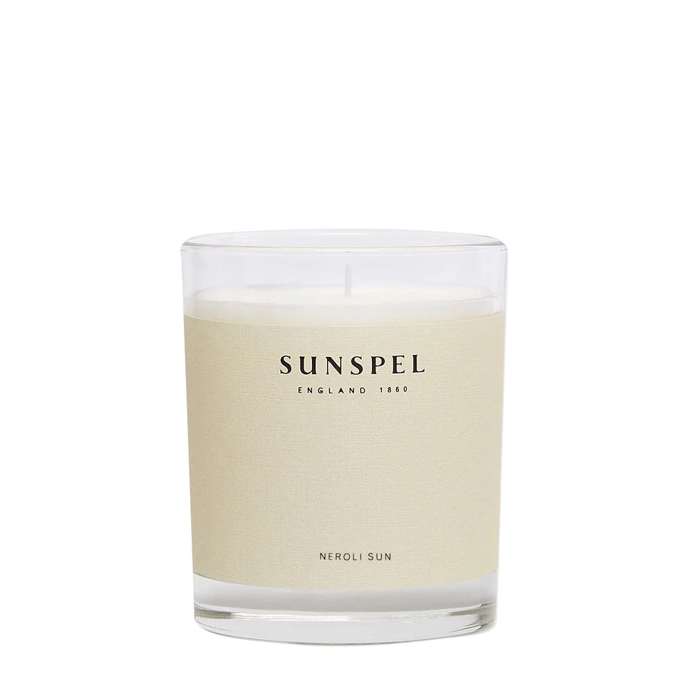 A scented candle infused with Sunspel's fragrance, Neroli Sun, created by the leading London perfumer Lyn Harris. Neroli Sun captures the essence of a carefree, sun dappled English summer: a blend of sharp, sunny citrus fruits, infused with aromatic rosemary, lavender and angelica, sitting on a base of classic green vetiver, sultry patchouli and beachy sea moss. Crisp, modern and perfectly balanced.
