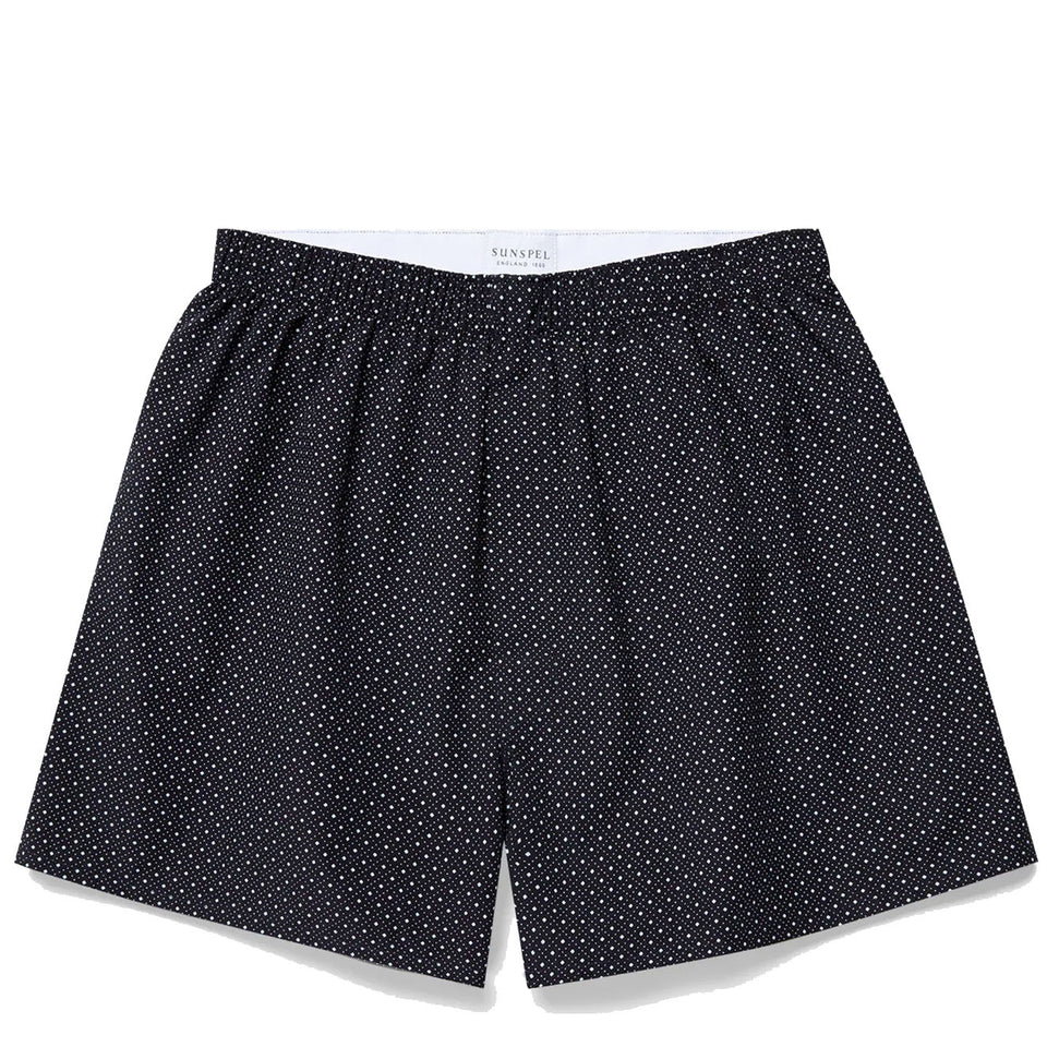 Sunspel Printed Boxer Short Navy Diamond Spot