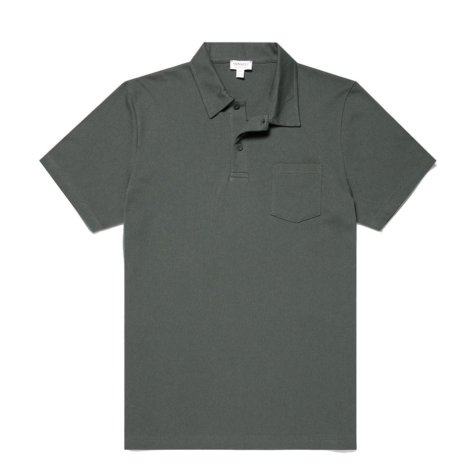 Sunspel Riviera Polo Shirt Drill Green