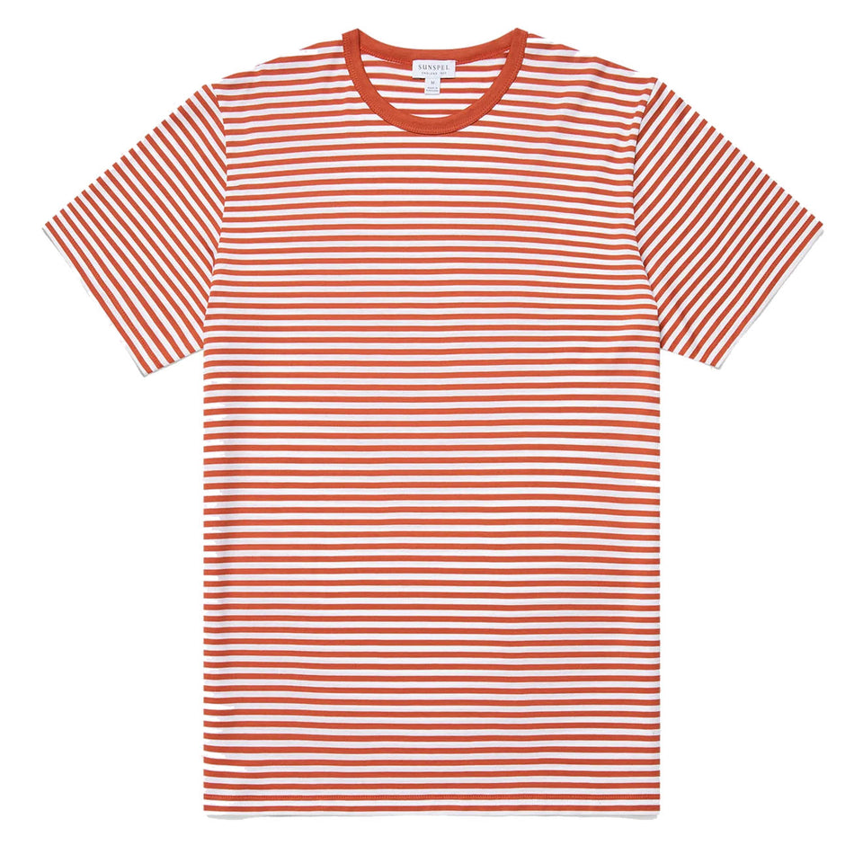 Sunspel S/S Crew Neck T-Shirt White / Burnt Sienna English Stripe