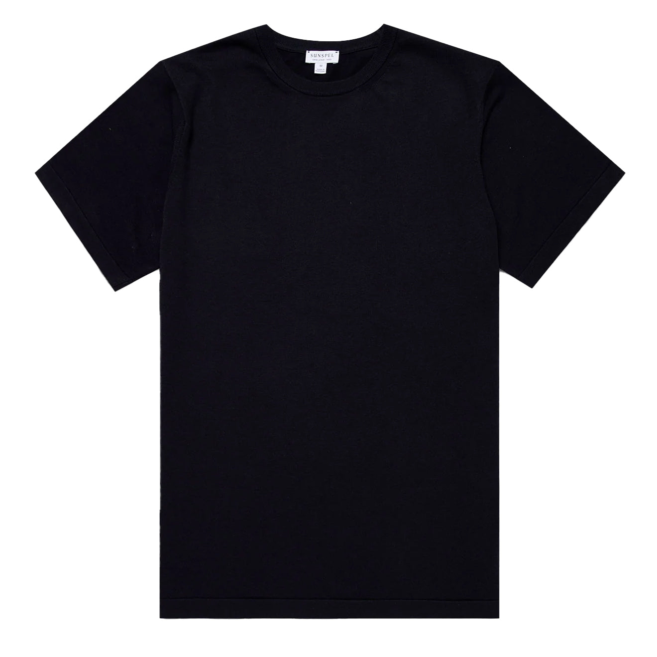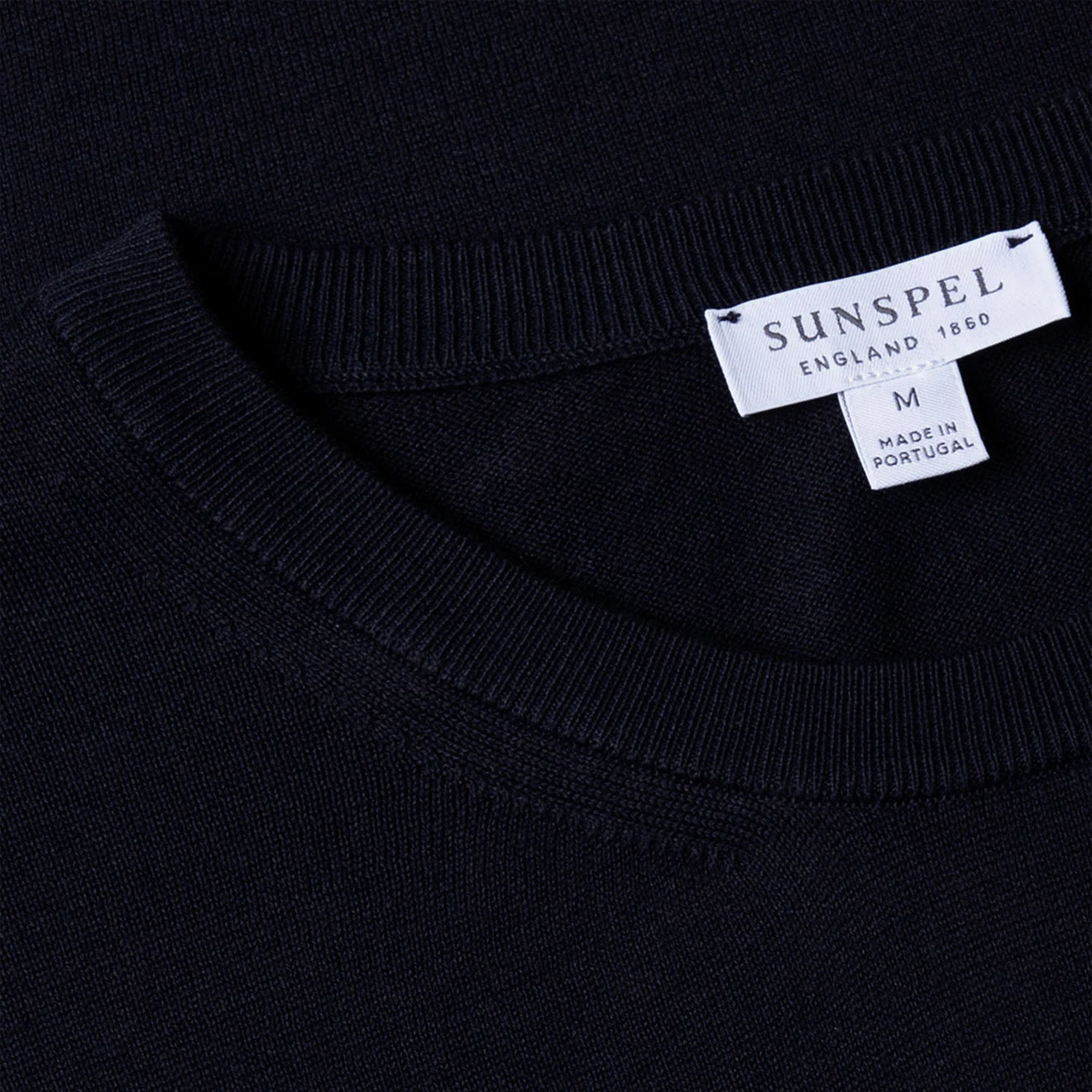Sunspel Sea Island Crew S/S Knitwear Light Navy
