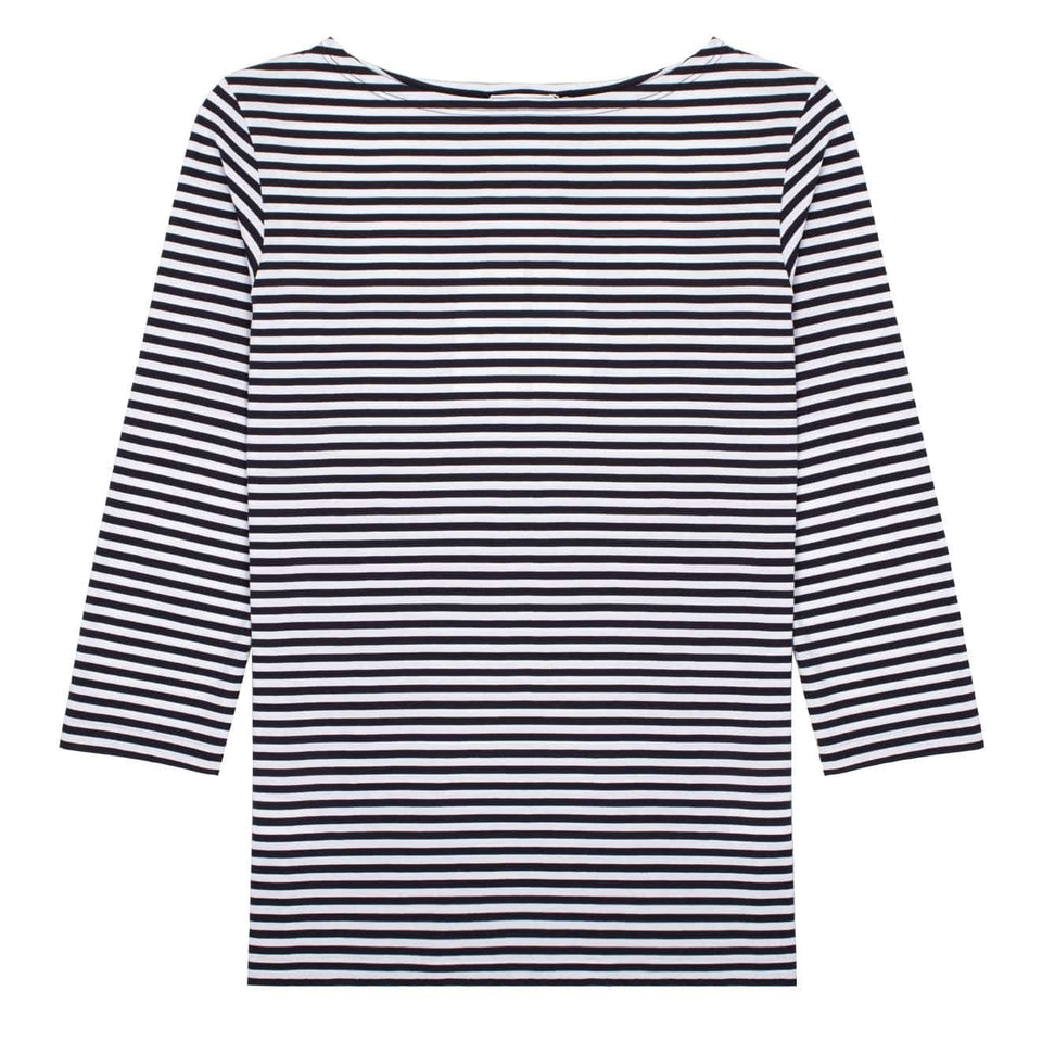 Sunspel Womens 3/4 Sleeve Boat Neck T-Shirt White / Navy Stripe