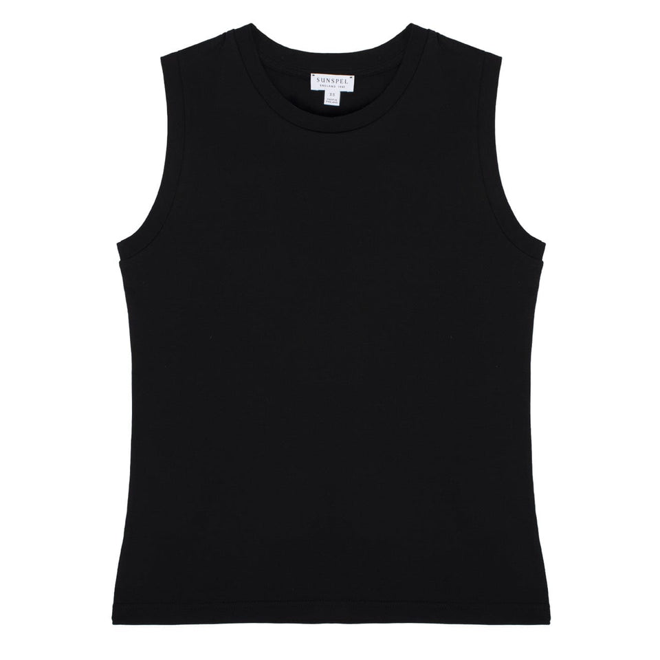 Sunspel Womens Boy Fit Tank T-Shirt Black