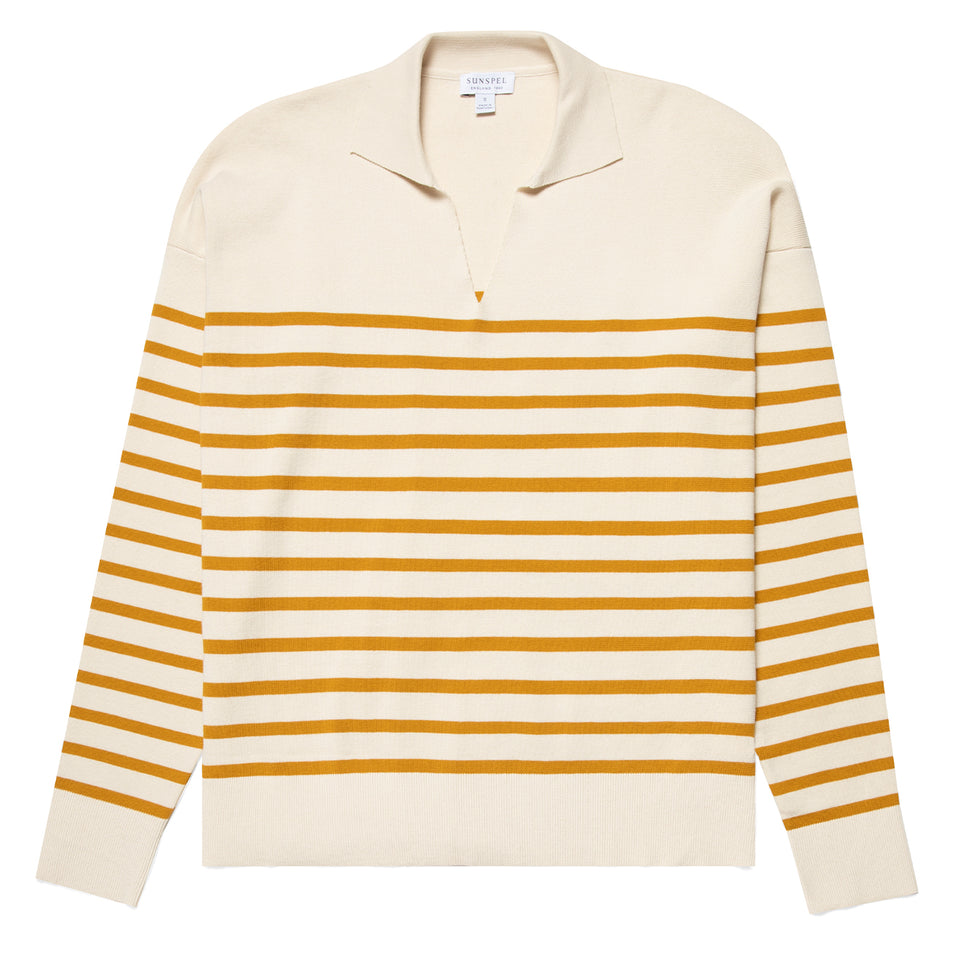 Sunspel Womens Breton Stripe Sweater Ecru / Cider Breton Stripe