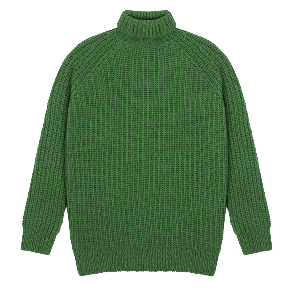 Sunspel Womens Chunky Roll Neck Jumper Bright Green