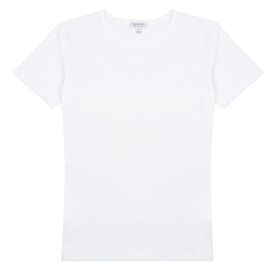 The Sunspel Womens Classic T-Shirt has a clean, body skimming fit and crew neckline. This shape will form the foundation of your everyday wardrobe. The Sunspel signature Pima cotton jersey offers softness and comfort. Perfectly proportioned sleeves give this style a feminine touch. The length is cut to sit just over your waistband, allowing total freedom of movement. Designed to be a luxurious wardrobe staple that can be styled with a range of garments and accessories for all seasons.