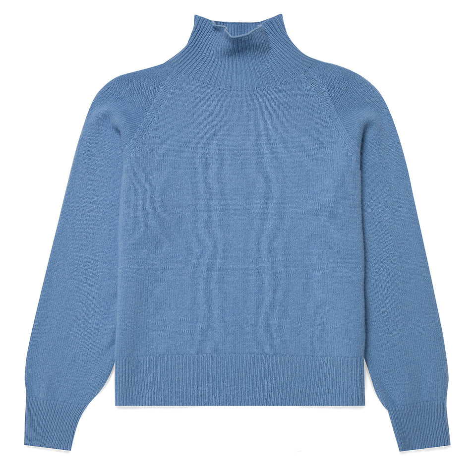 Sunspel Womens Funnel Neck Jumper Cornflower