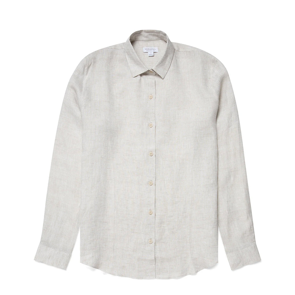 Sunspel Womens L/S Shirt Oatmeal Melange Linen