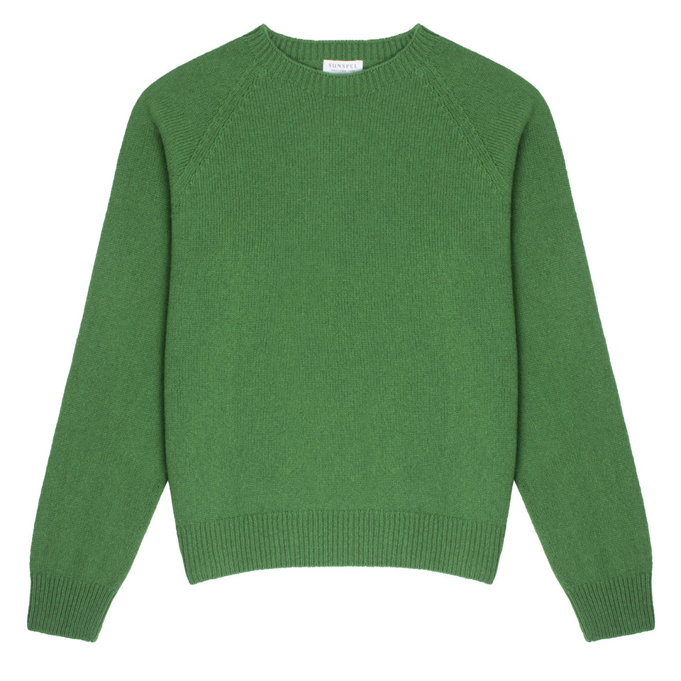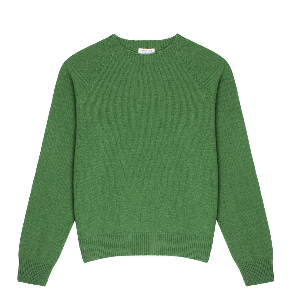 Sunspel Womens Lambswool Crew Neck Jumper Bright Green