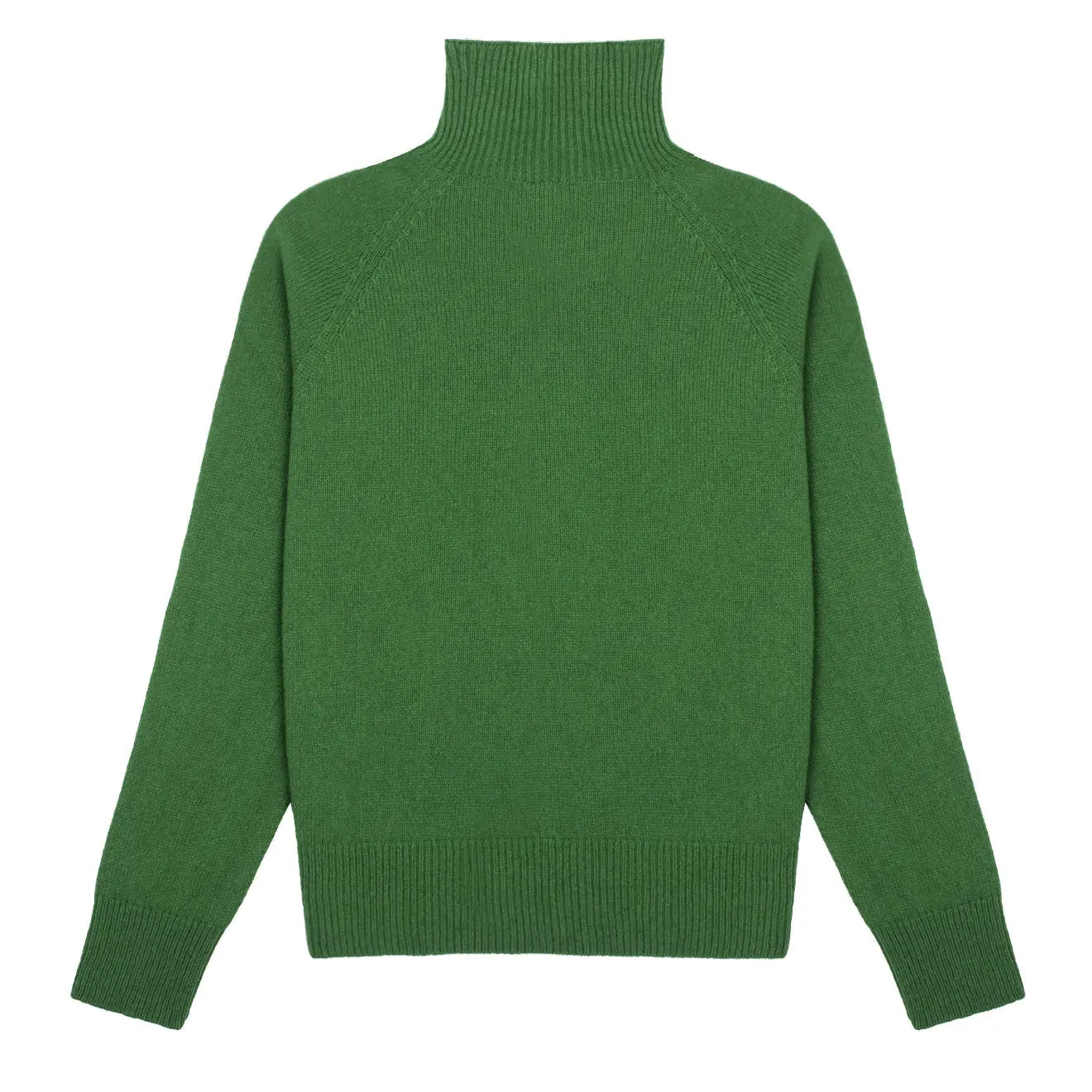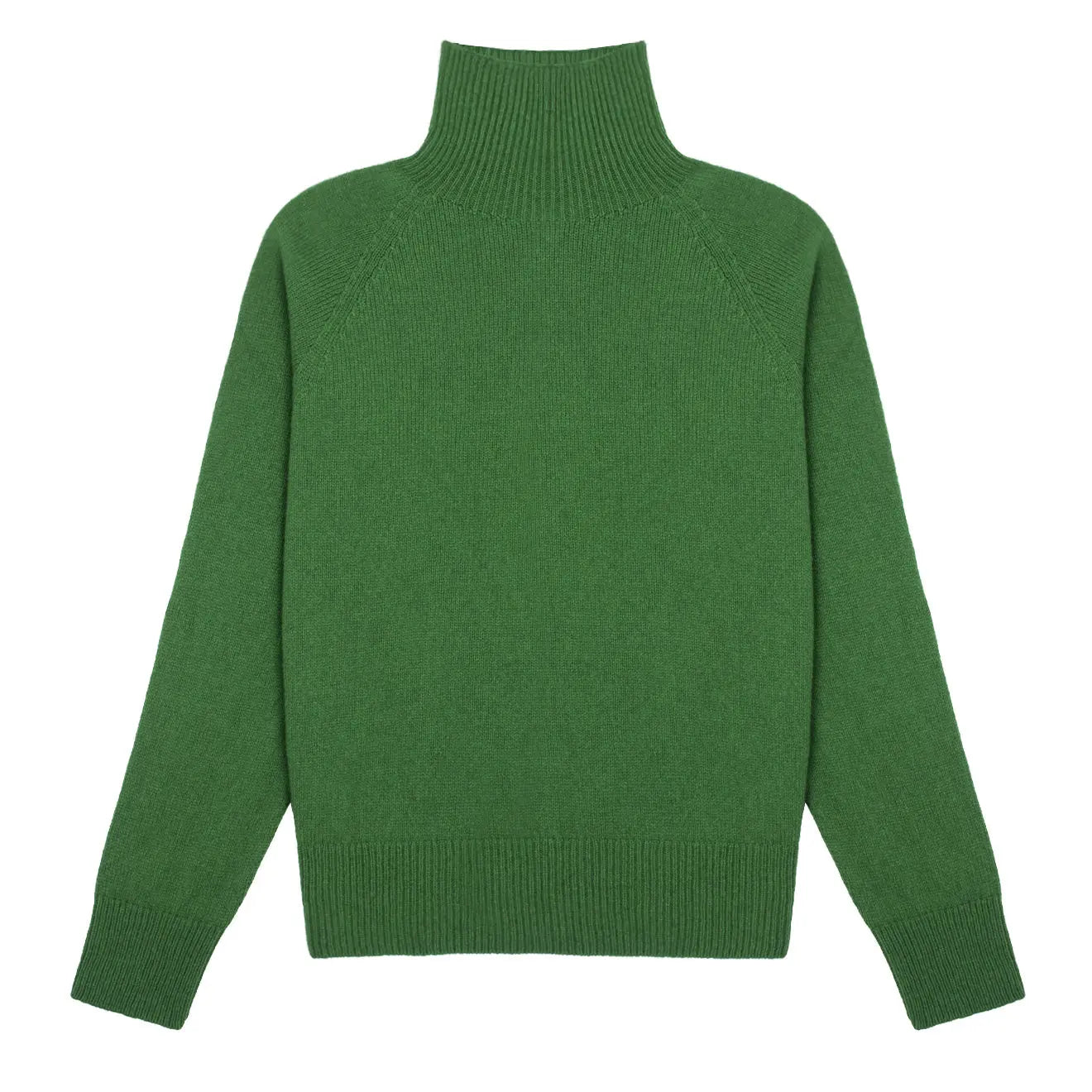 Sunspel Womens Lambswool Funnel Neck Jumper Bright Green