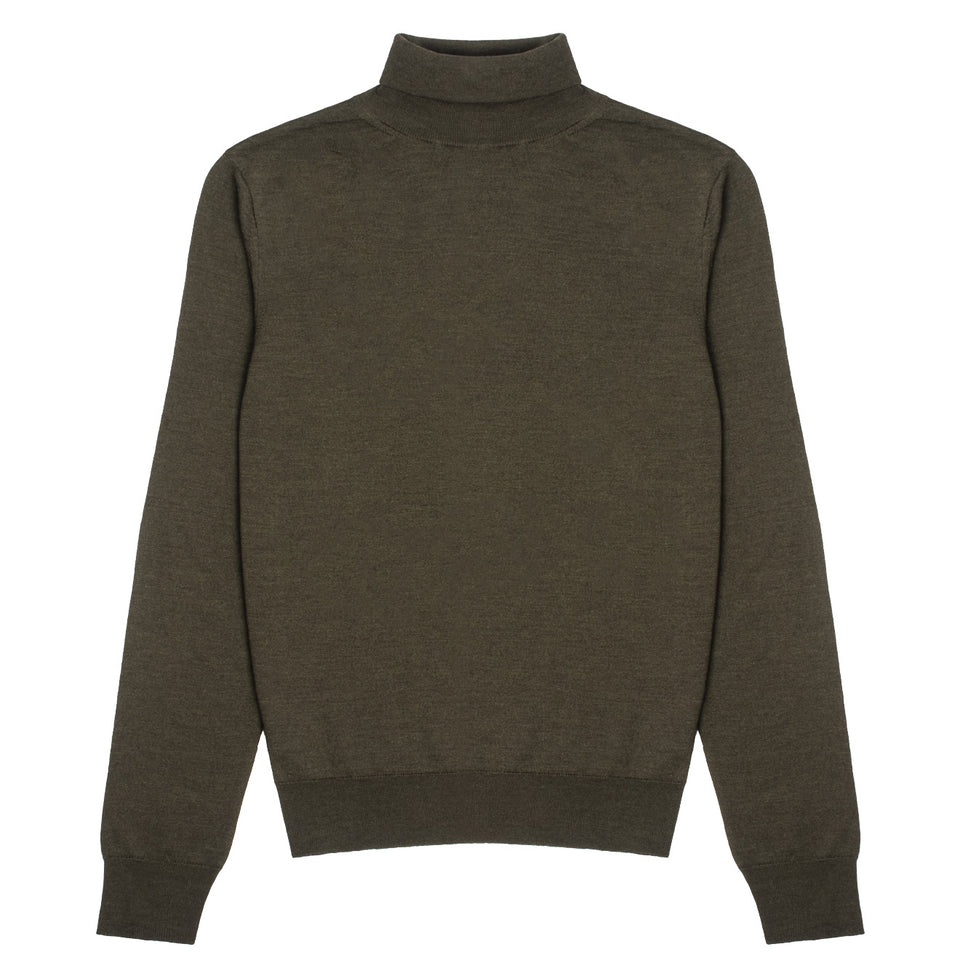 Sunspel Womens Merino Silk Roll Neck Sweater Dark Moss