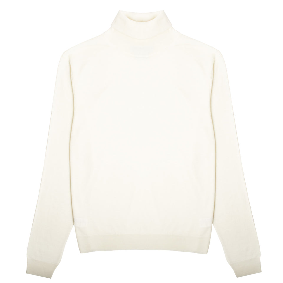 Sunspel Womens Merino Silk Roll Neck Sweater Ivory