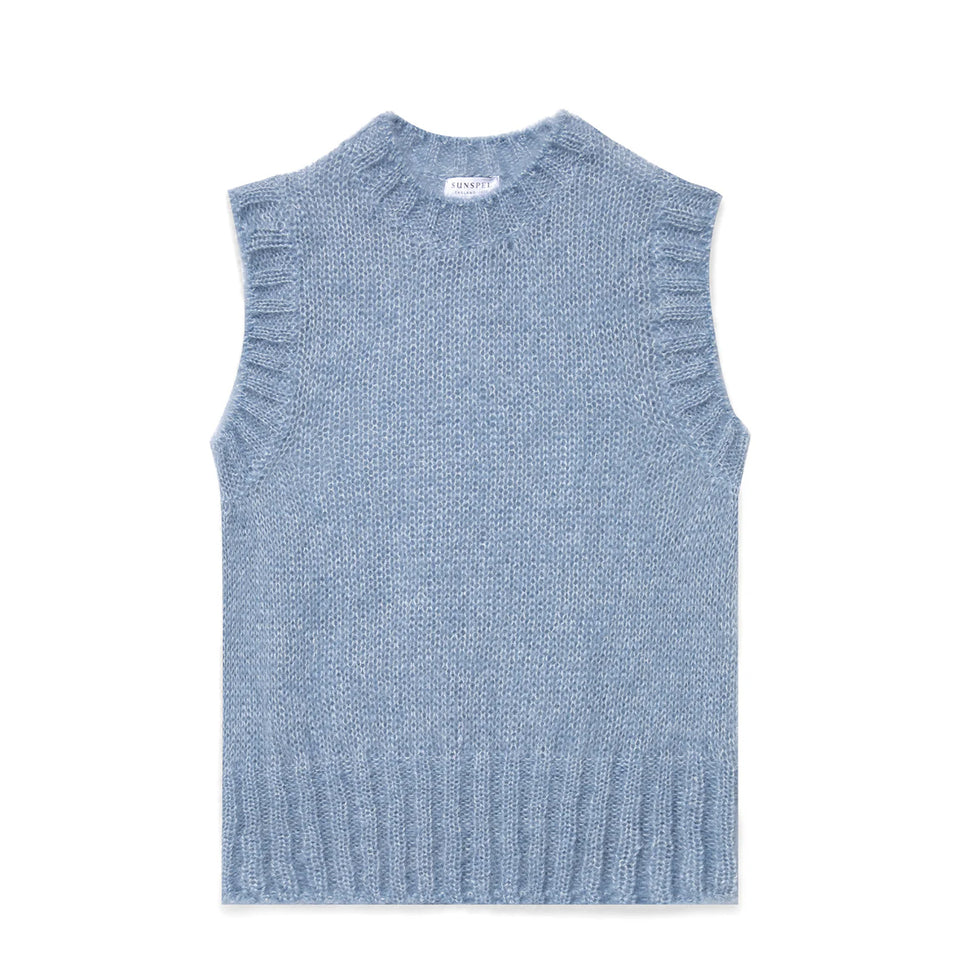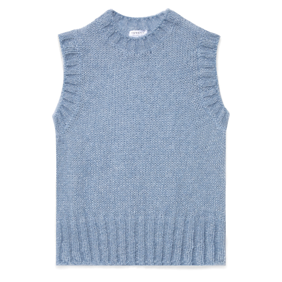 This beautifully soft vest is crafted from an Italian-spun blend of mohair and silk, offering a luxuriously light and airy feel. Designed with a neat, regular fit and a ribbed hem, it serves as a versatile layering piece that can be worn over a shirt or on its own throughout the year.