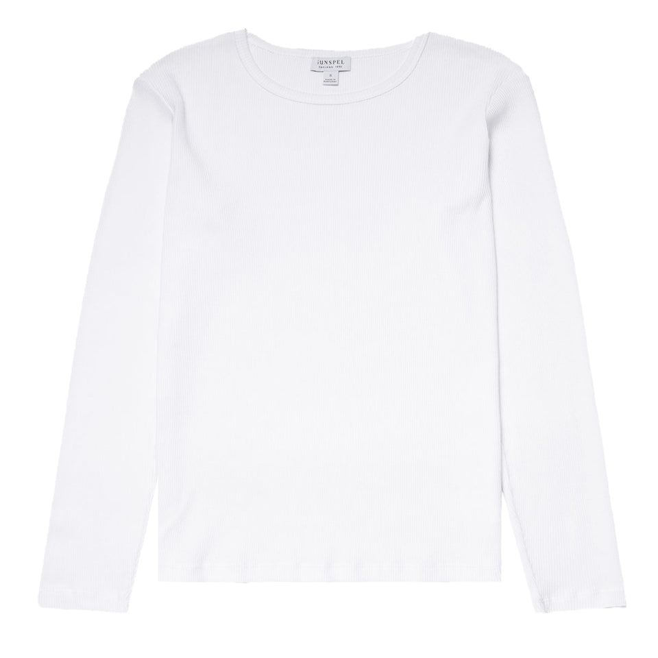 Sunspel Womens Ribbed Long Sleeve T-Shirt White