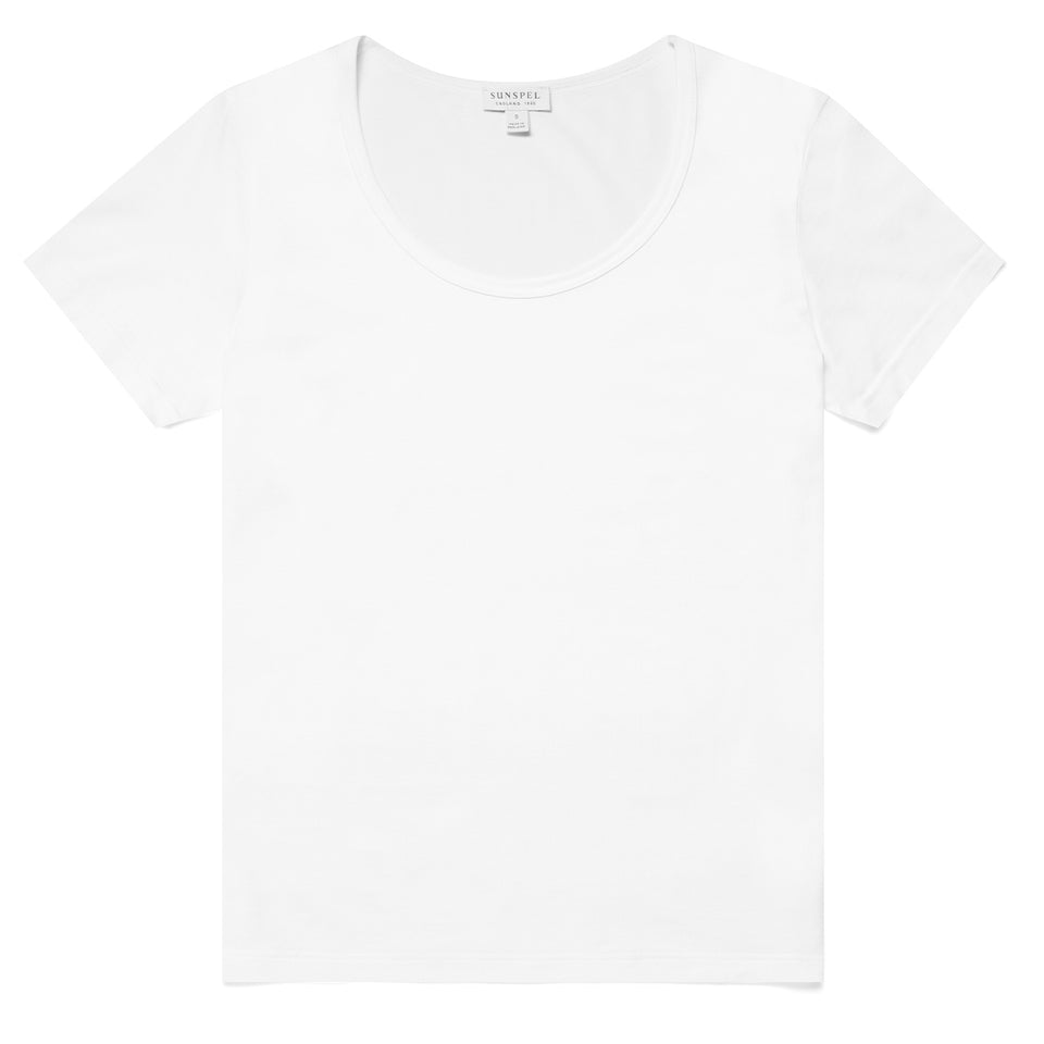 Discover unparalleled comfort and style with the Sunspel Women's Scoop T-Shirt. Meticulously crafted from premium fabrics, it reflects Sunspel's commitment to excellence. The shirt's exquisite blend of softness and durability makes it an essential addition to your wardrobe. Elevate your everyday look with a versatile and timeless piece that epitomizes comfort and elegance.