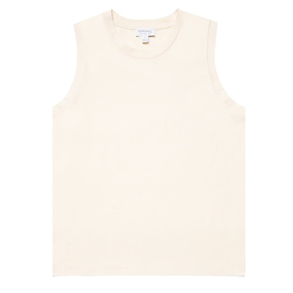 Experience ultimate comfort and style with the Sunspel Women's Tank T-Shirt in Undyed hue. Meticulously crafted from premium, natural fabrics, it embodies simplicity and luxury. The shirt's soft touch and versatile design make it a staple in your wardrobe, offering a timeless aesthetic that prioritizes both comfort and elegance.