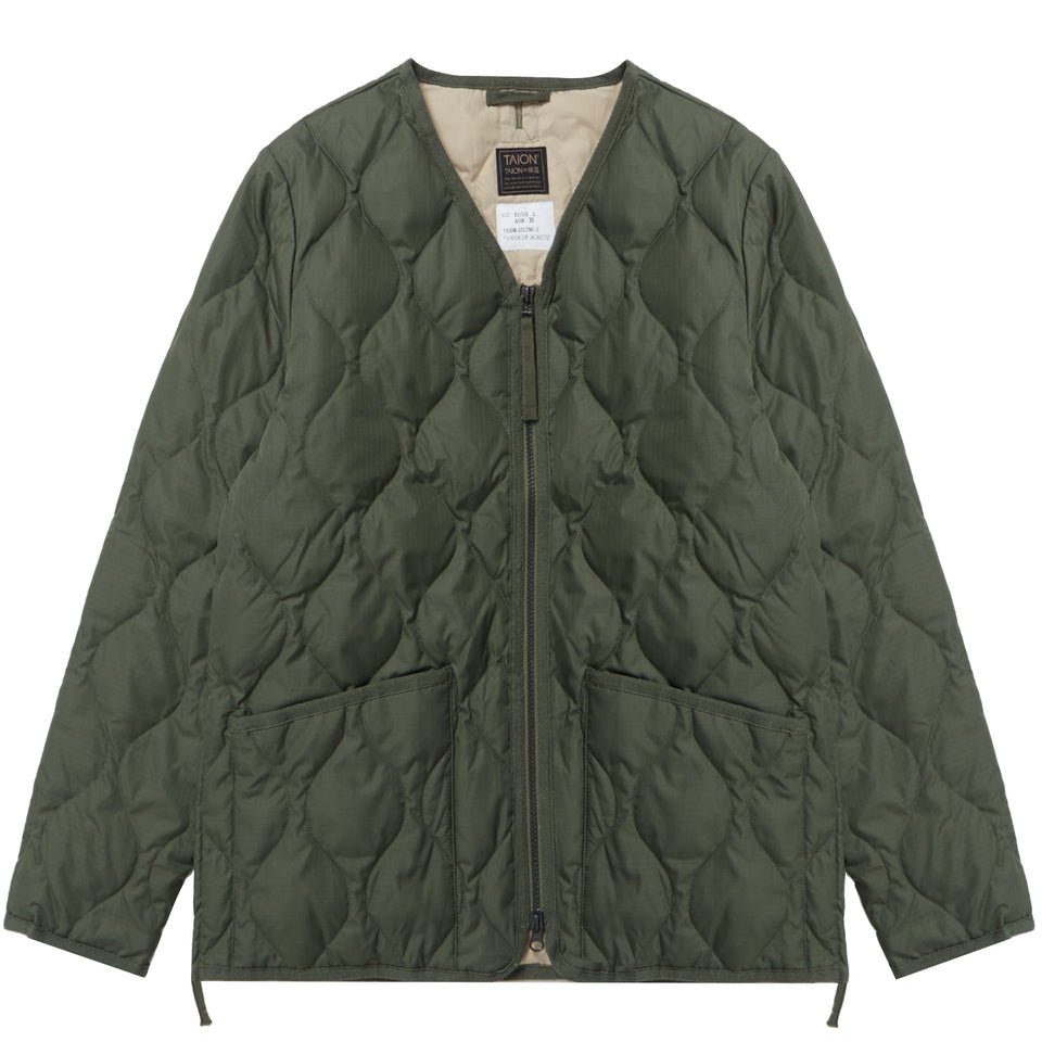 The Taion Military W-Zip V Neck Down Jacket in Dark Navy has a design inspired by contemporary Japanese fashion. Boasting W-Zip detailing and a traditional military shape, this quilted jacket exudes a modern flair. Crafted with a lightweight yet warm construction, it’s an ideal choice for cooler temperatures.
