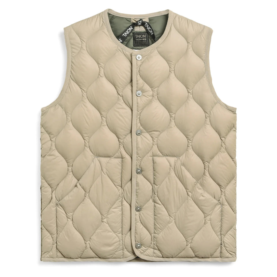 Taion Womens Military Crew Neck Down Vest Soft Shell Grey Beige