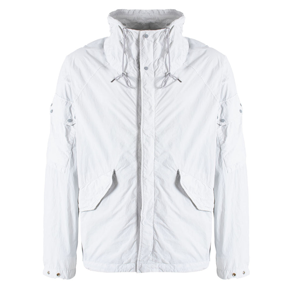 The Grey Microchip hue of this hooded mid-layer is achieved through an advanced garment dyeing process, giving each piece a distinctive "used" look that adds character and depth. This process ensures that no two garments are exactly alike, making each piece unique and unrepeatable—a hallmark of Ten C’s commitment to individuality and craftsmanship.