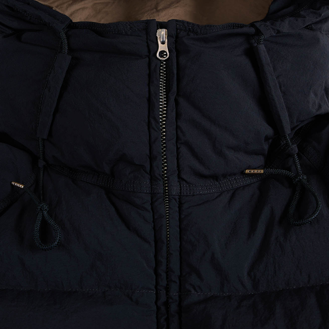 The Ten C Icy Down Jacket in Black combines technical performance with refined style. Made from garment-dyed nylon tactel and filled with insulating down, it delivers lightweight warmth without bulk. The jacket’s clean lines and minimalist detailing make it versatile for urban or outdoor wear, while the garment-dyed fabric provides a soft, worn-in aesthetic.