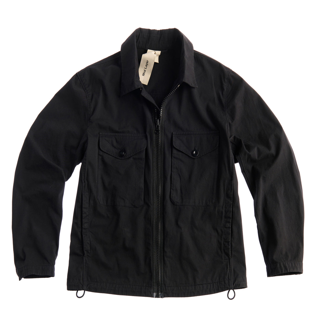 The Ten C Mid Layer in Black Garment is a refined and functional addition to any wardrobe. Constructed from durable tactel nylon, it delivers a lightweight feel without compromising strength. The garment-dyed process enhances the depth of the black tone and adds a soft, broken-in character, creating a versatile layer suitable for both casual and technical wear.