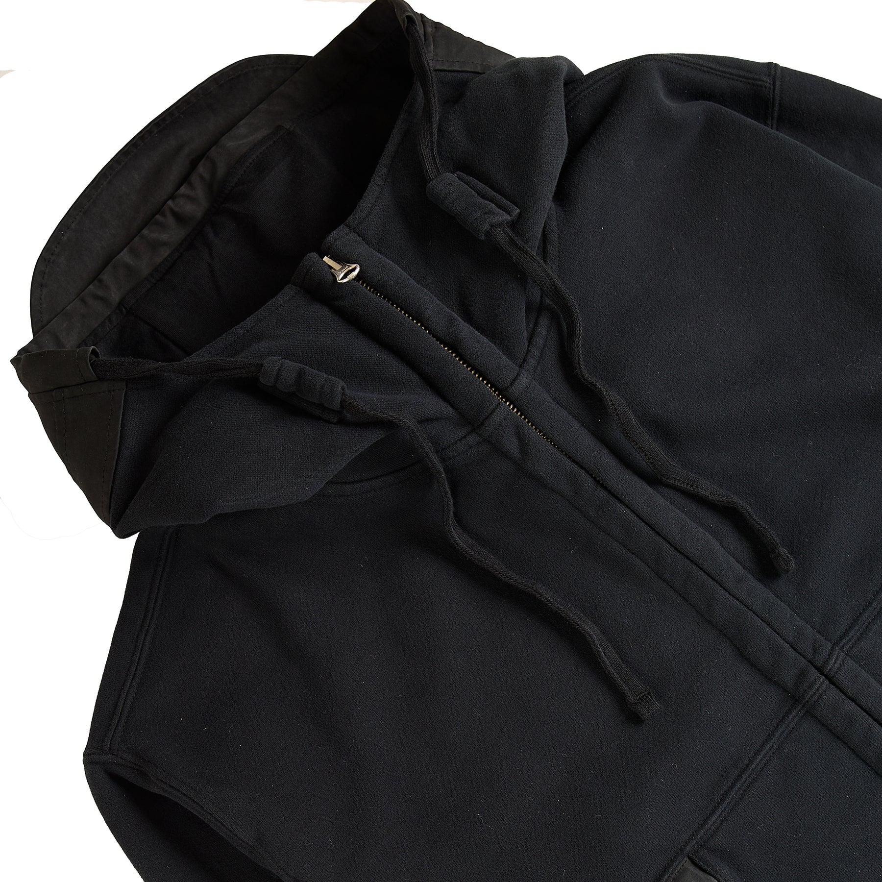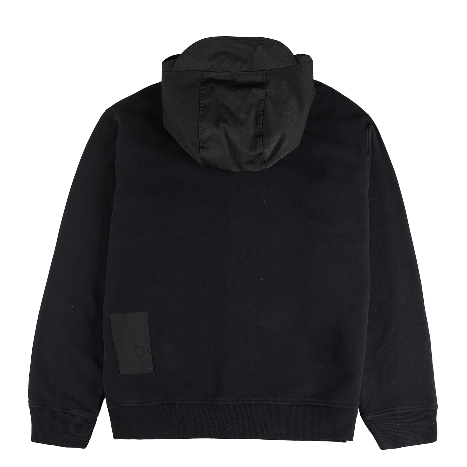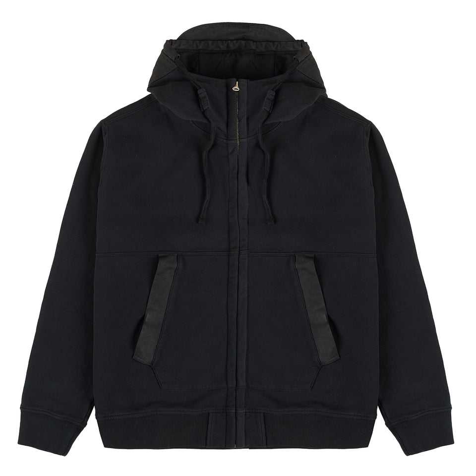 The Ten C Open Hooded Sweatshirt in Black is made from Mako cotton and garment dyed for a soft finish. It is cut on a longer shoulder kimono block with ergonomic sleeves for comfort and ease of movement. A relaxed yet tailored piece designed for casual wear.