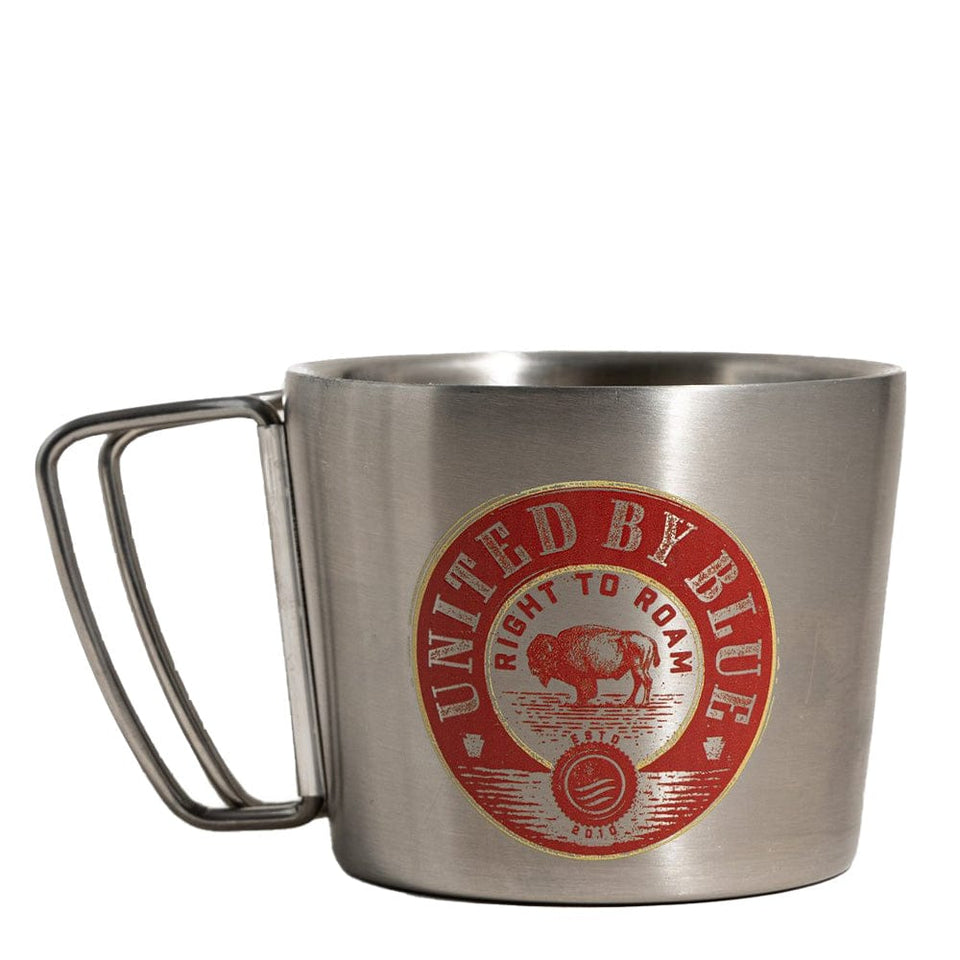 The United by Blue 12oz Compass Cup is a double-insulated, stainless steel and responsibly-made mug. It features a collapsible handle so you can easily stack it in the cupboard or take it out and about with you.