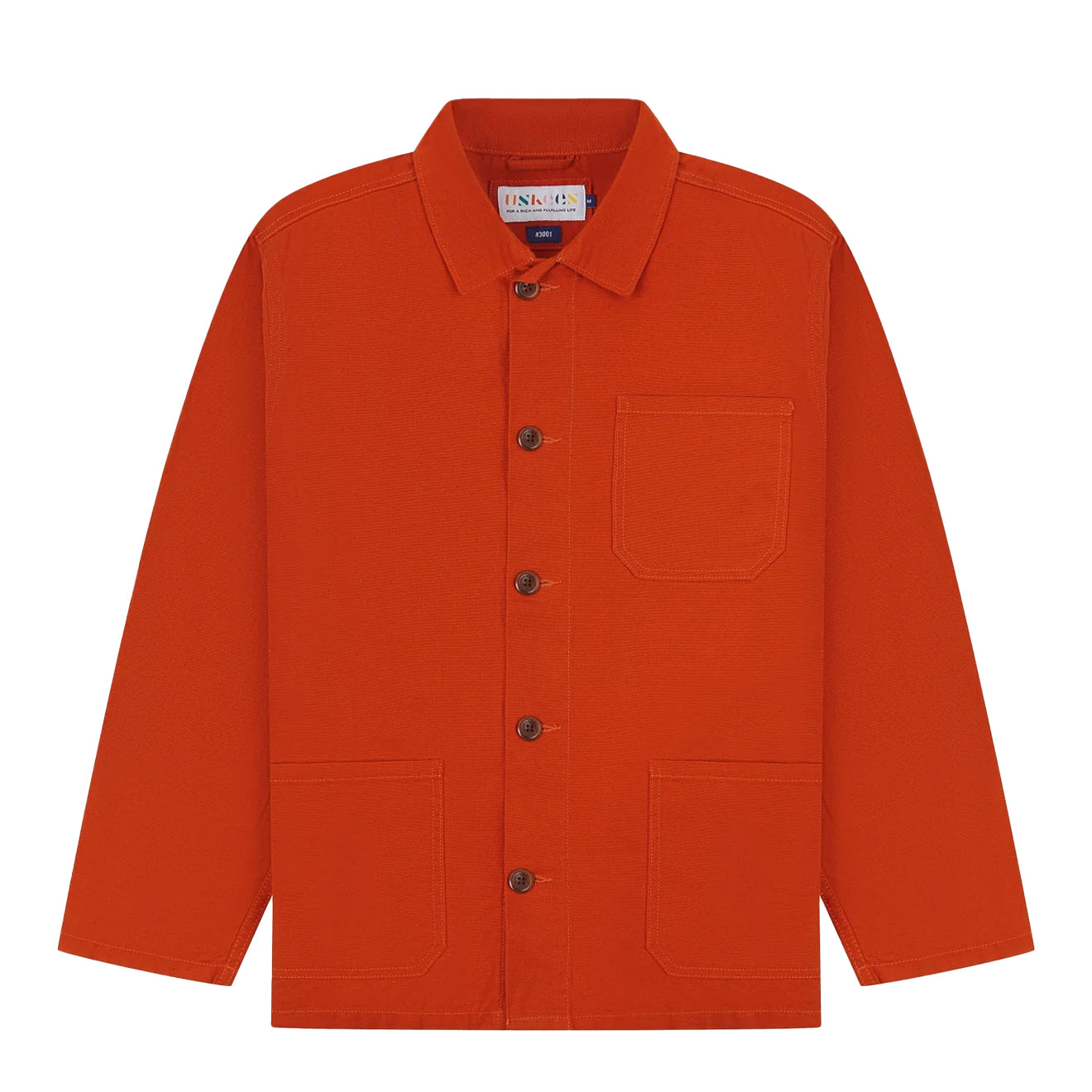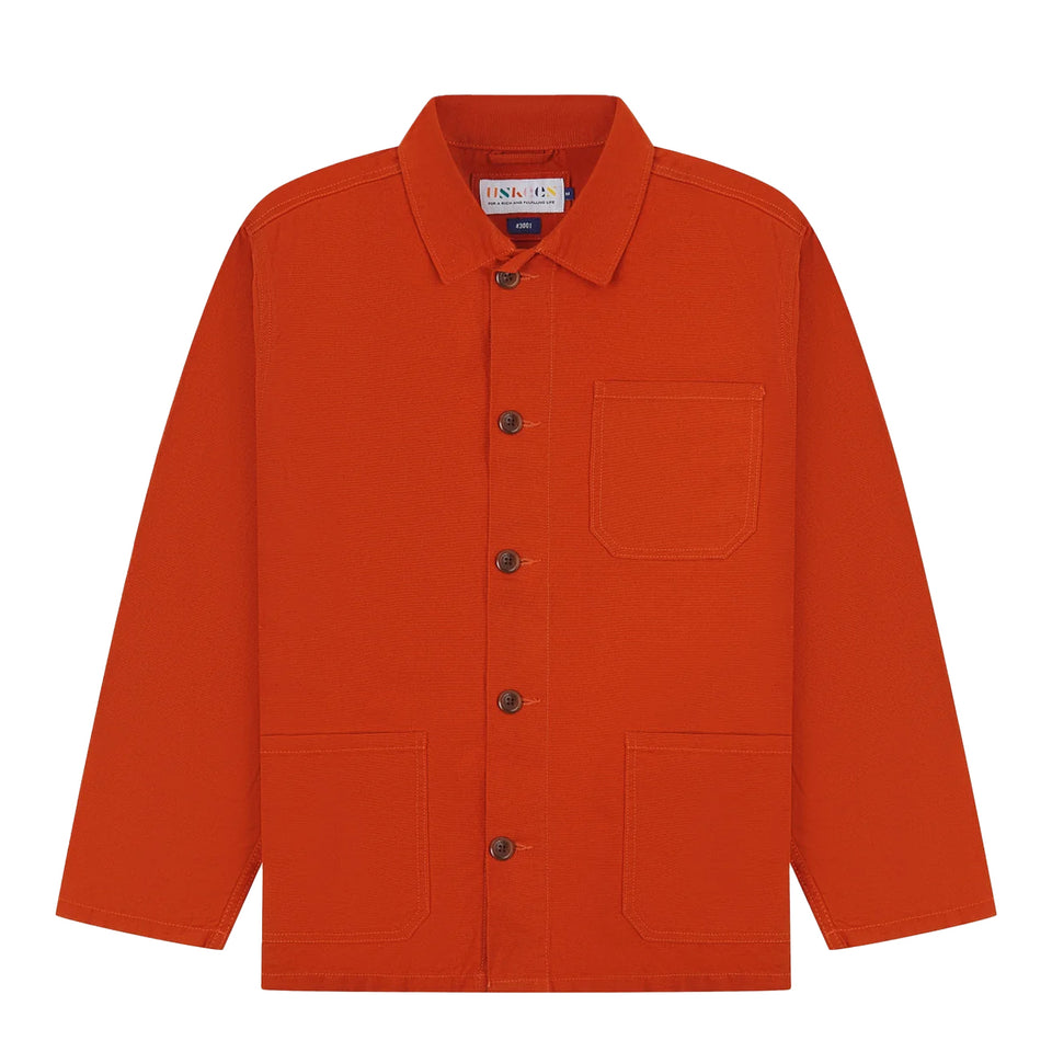 The Uskees 3001 Buttoned Overshirt in Rust is a modern take on the classic 20th Century workwear jacket. Designed as a durable chore coat, it combines strength and style for everyday use.