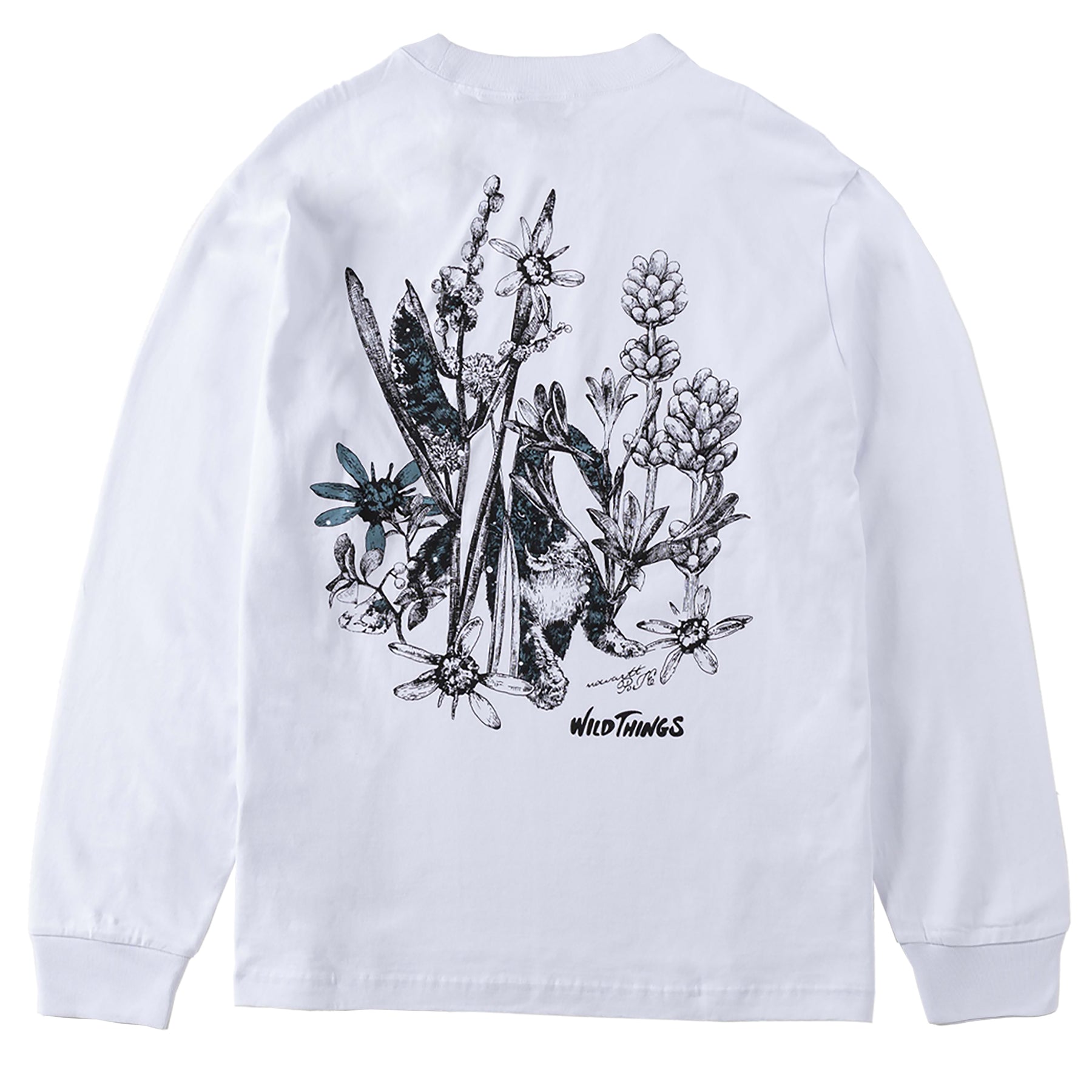 The Wild Things Graphic Long Tee in White is the perfect blend of style and comfort for your everyday wardrobe. This long-sleeve tee features a striking flower graphic on the rear, adding a unique touch to your outfit. There is a 'Wild Things' tag on the front with signature branding on the chest. Made from soft, breathable fabric, this tee ensures all-day wearability and is ideal for layering or wearing on its own. Perfect for casual outings or relaxed days at home.