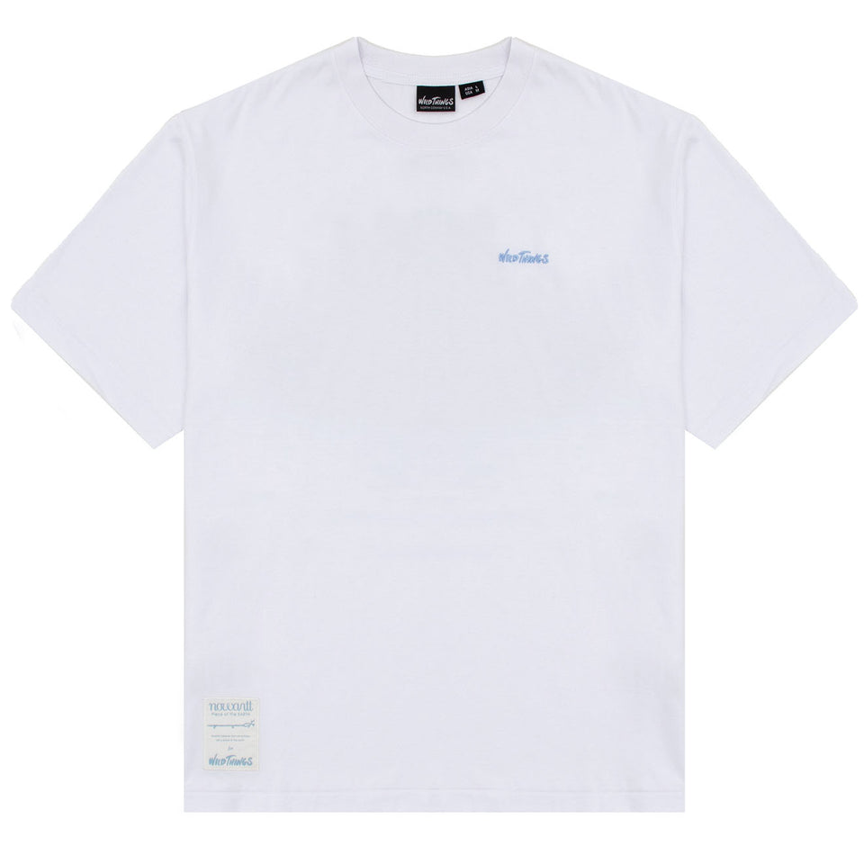 The Wild Things Wild Animal Tee in Two White is a relaxed fit, with the Wild things embroidery to the chest and a silkscreen print developed by Japanese fabric artist Nowartt to the back of a hippo in water.