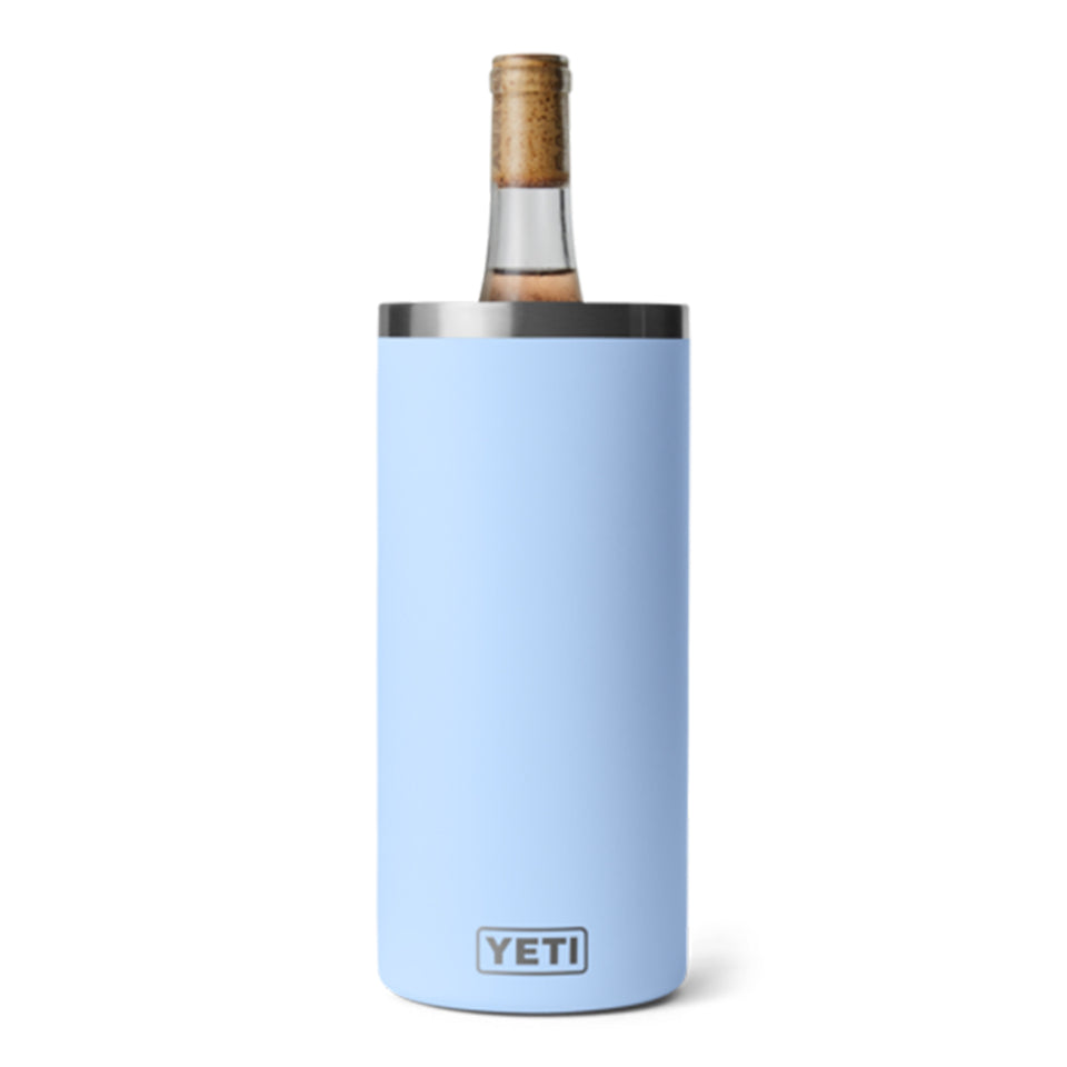 The YETI Rambler Wine Chiller in Big Sky Blue is built for wine nights in the wild, keeping bottles at the perfect sipping temperature for hours. Durable and cold-holding, it fits most wine and champagne bottles. For optimal performance, pre-chill in an icy cooler or fridge before use.